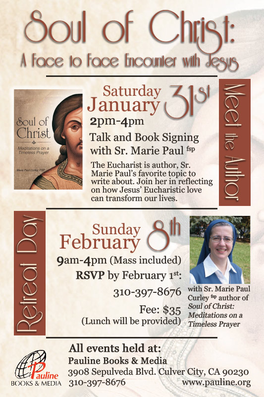 For those in California, I just wanted to let you know I’m visiting on a book promotion tour for the next two weeks. If you can, join me–I love meeting those discerning and readers of my books and blogs! I’m posting up the events below. As you know, Eucharistic adoration is one of the best ways to pray when you are making a discernment!