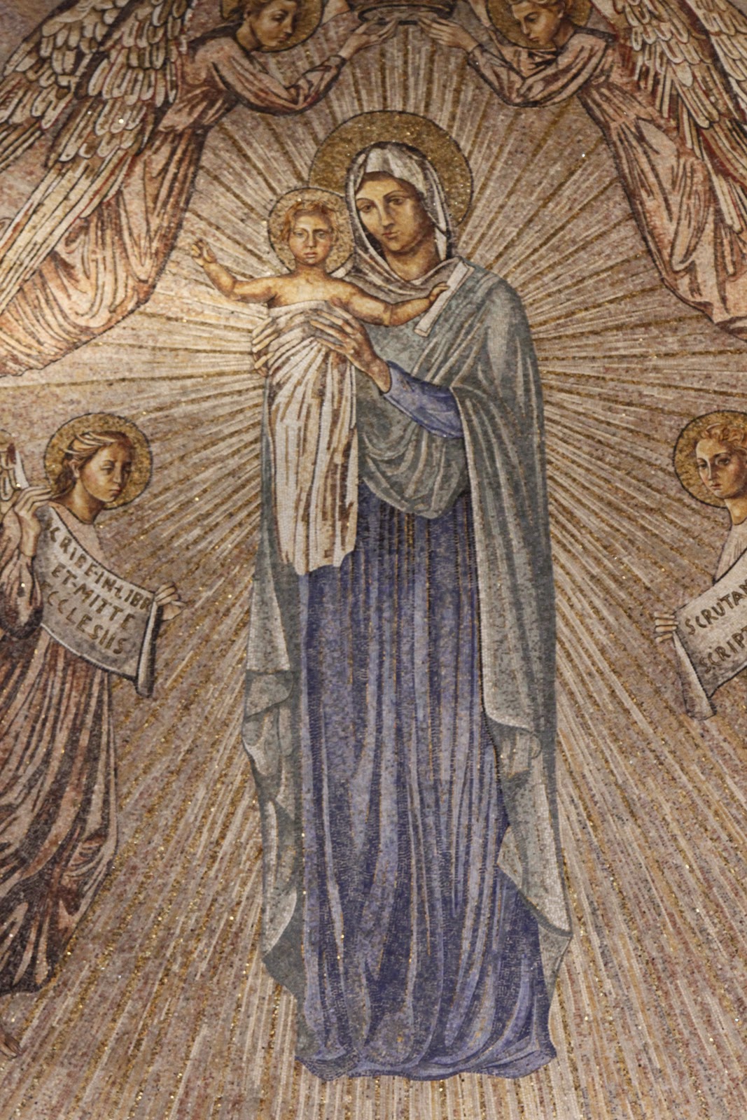 Our Pauline website has an explanation of what the title means. In the images of Mary, Queen of Apostles, Mary is holding Jesus out–as if to give him away. Blessed James Alberione describes the meaning of this gesture very specifically: “In the ‘Hail, Holy Queen,’ the Church describes her [Mary] to us with very beautiful titles, but the most beautiful is the one we see portrayed in the new painting of the Queen of the Apostles, in which the Madonna does not clasp Jesus to her heart, but holds him out to the Apostles, as her most sweet fruit, in order that they, in turn, will hold him out to humanity.”